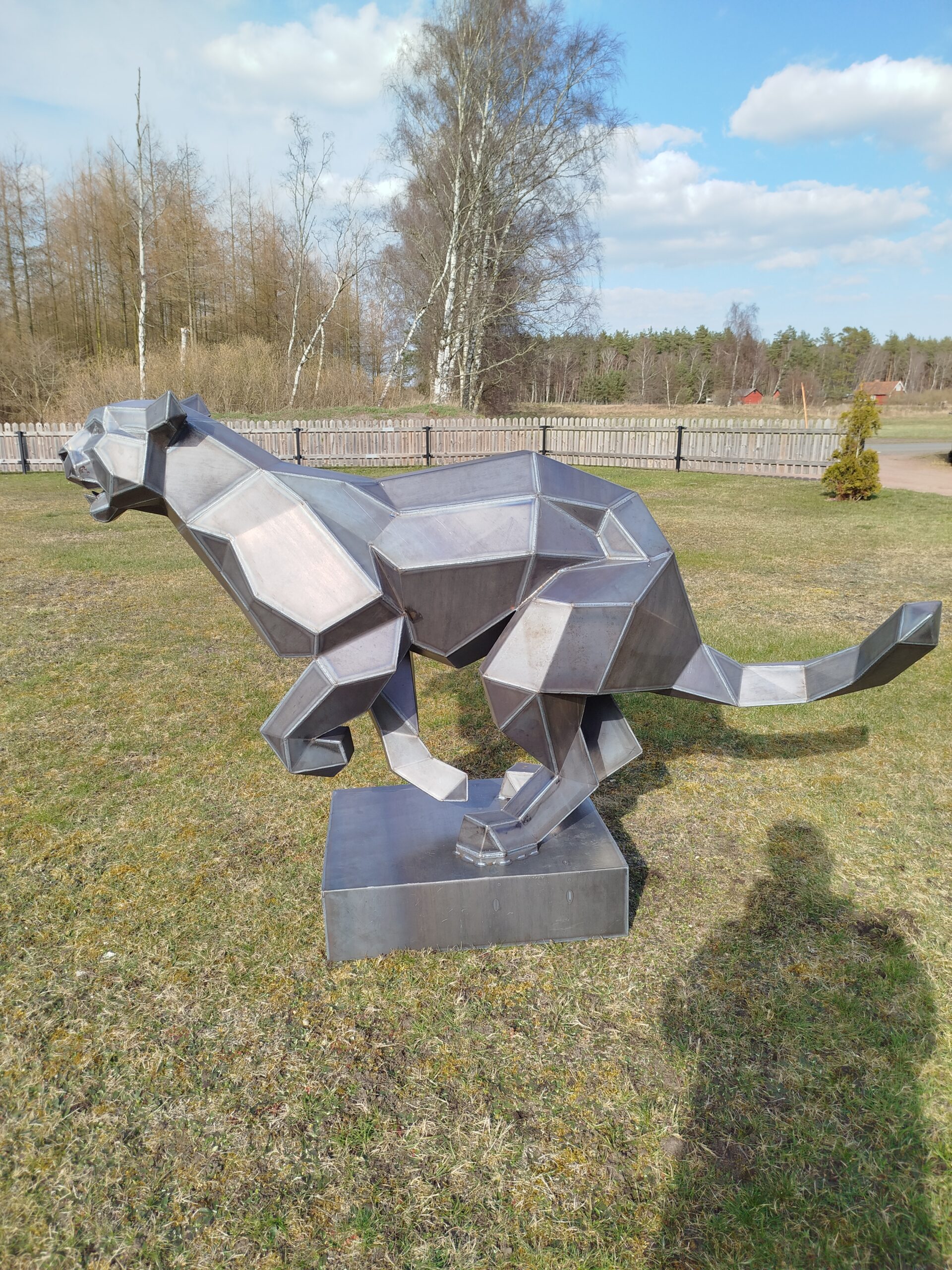 Skulpturen är tillverkad i 2 mm cortenstål och helsvetsad för att säkerställa en stabil och hållbar konstruktion.